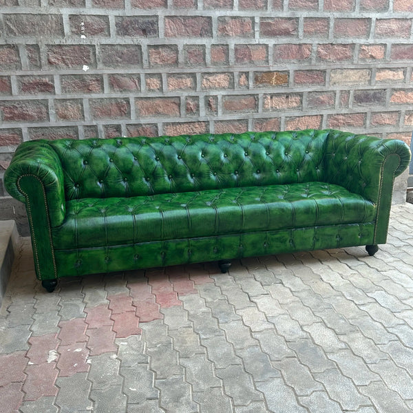 The Polo Green Chesterfield Leather Sofa is made to order from the finest quality, top-grain leather that we dye in-house ourselves. Please see the "Materials & Construction" section below for further details.